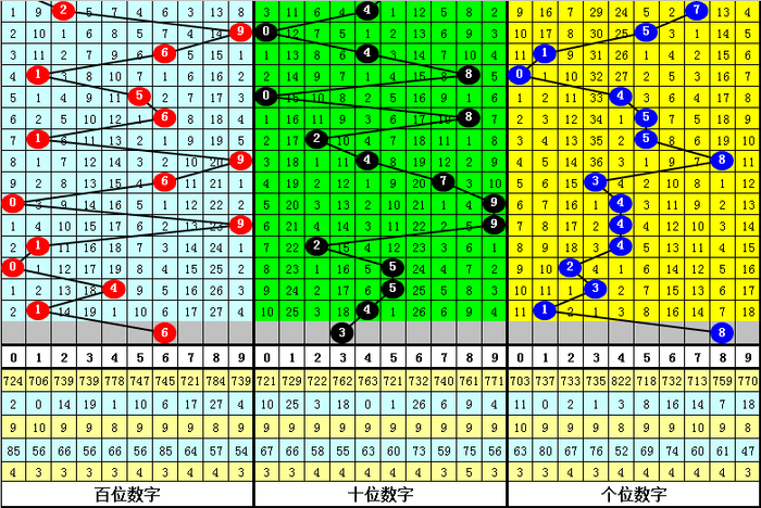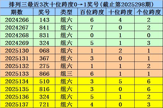 首位跨度分析:首位号码最近3期奖号为0-4-1,攀附两期跨度为4、3,历史上首位号码攀附两期隔离开出跨度4、3的情景共出现141次,其前两次开出奖号隔离为: