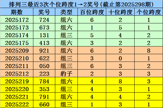 第2025209-第2025211期奖号:921、622、050,其下期奖号为:223,末位号码跨度为2;