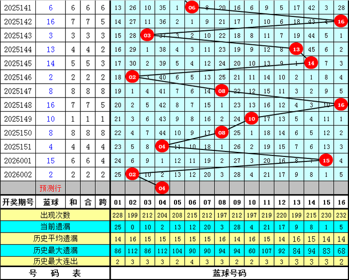 蓝球分析:上期蓝球为2路号码02,下落13个点位,最近50期开奖中,蓝球号码012路落号比为16:20:14,前10期蓝球012路落号比为1:4:5,本期蓝球关心1路号码,独蓝参考04。